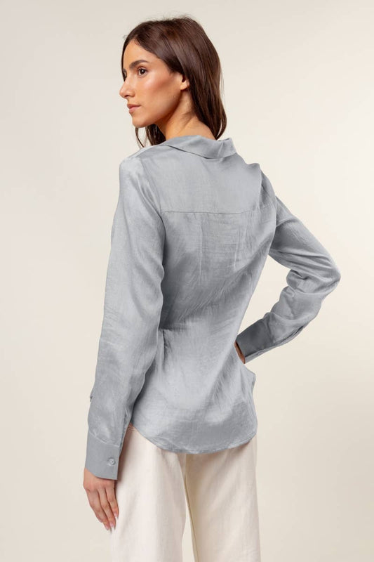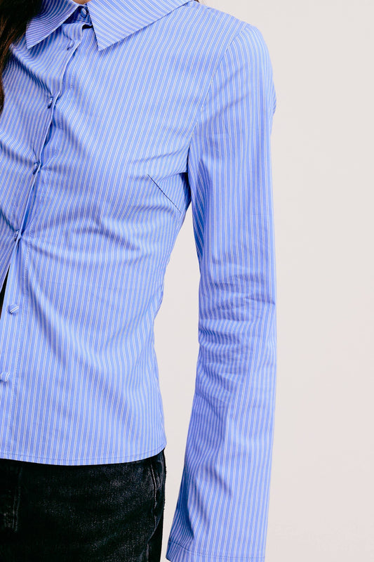 Fitted Pin Stripe Shirt w/Flared Sleeve