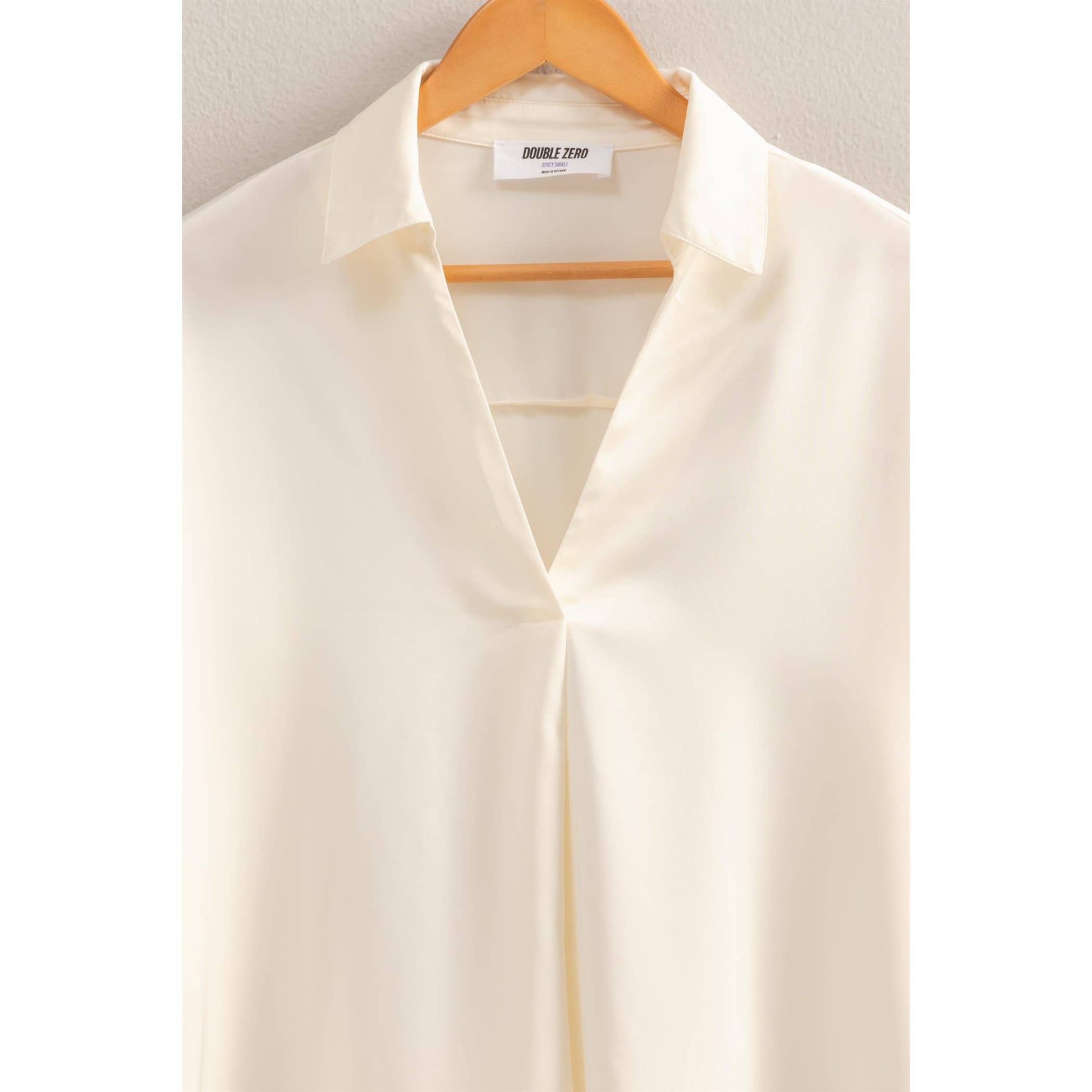 This Classy Satin V-Neck Blouse is a versatile and stylish addition to any wardrobe. Made with high-quality satin fabric, it exudes luxury and sophistication, while providing comfort and ease of movement due to its relaxed fit. The classic collar and deep V-neckline make it perfect for both casual and formal occasions. Its long sleeves end with buttoned cuffs for a tailored finish, and it pairs effortlessly with jeans for a chic daytime look or can be dressed up with a skirt for an elegant evening outfit. Made with 97% polyester and 3% spandex.
